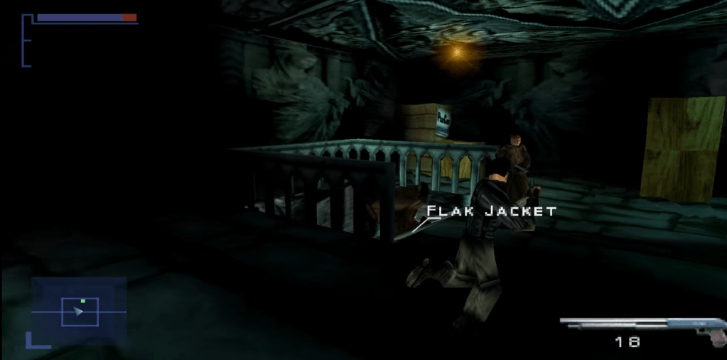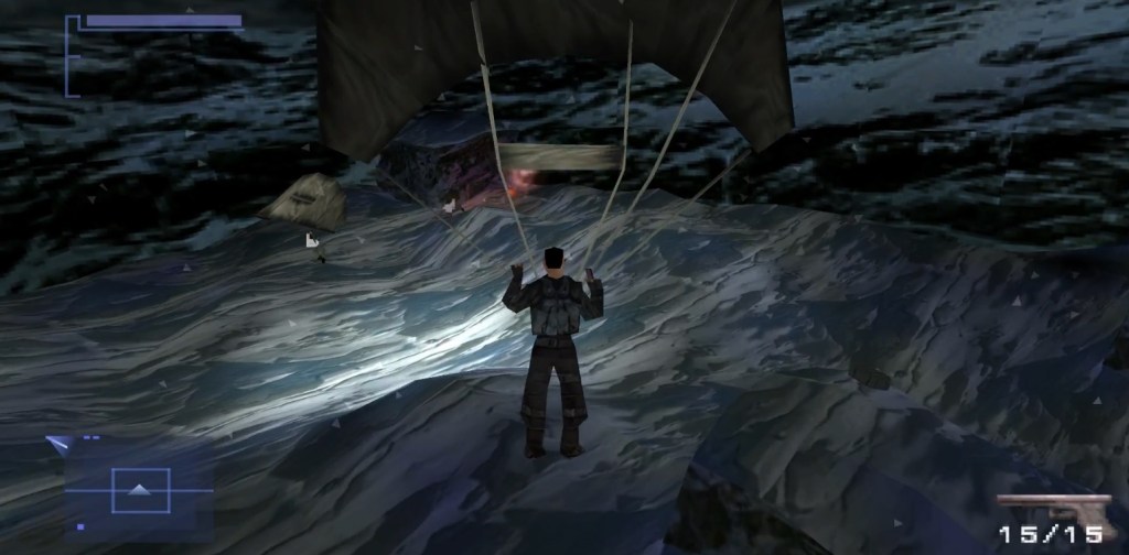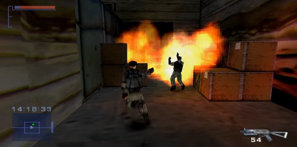 Third person shooters nowadays are all inclined to fall under the “cover shooter” mechanic, which was modernized by games like kill.switch and Gears of War. But in the late 1990s, third person shooters were taking cues from first person shooters like Doom and Shadow Warrior. Eidetic had seen other third person titles like Metal Gear Solid, Tomb Raider, and MDK, and looked to branch from the same tree but work to make something completely their own. Enter Syphon Filter’s Targeting system. What was essentially a lock-on feature, the Target gauge would rise when snapped onto a target, but running or rolling would lower the chance of a bullet hitting its target. Crouching or standing still would raise the bar, and thus a better shot could be made, which could also be bypassed by aiming in a first-person catered camera zoom. The targeting system went both ways, as rolling or breaking line of sight would lower the enemy’s target gauge against yourself. This allowed for the riskier run n’ gun action of a Tomb Raider, or a calculated slower approach like a Metal Gear.