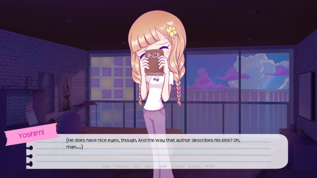 IOSB accompanies Yoshimi’s daily life with a hodge-podge of lo-fi instrumentals that carry a nice tune throughout the story. I definitely enjoy the lo-fi genre so I have no complaints with a nice soundtrack to guide me through a VN, but the upbeat and bass-thumping tracks felt a little done-teaf with some of the later calls at Yoshimi’s office and some other serious scenes, and could’ve used a softer touch to mesh in with those moments.