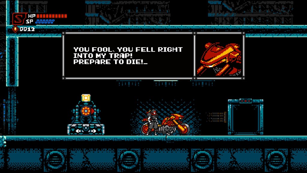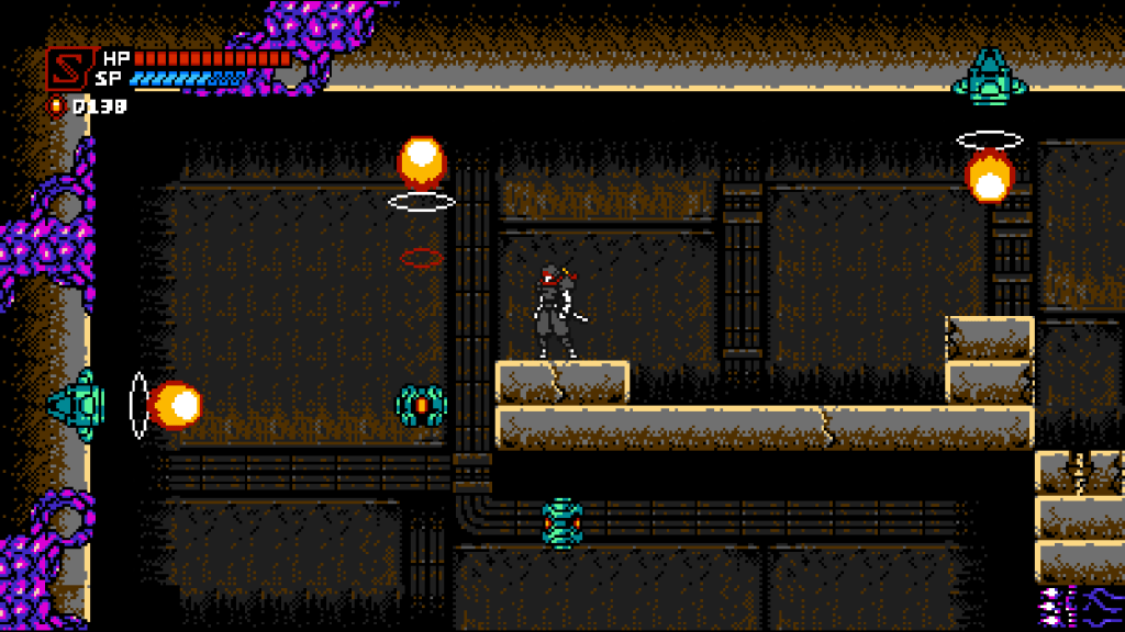 Inspirations are inevitable in creative work. Iterating on established concepts is how we get new ideas and it can be a challenging process. References, by contrast, are easy. Show people the thing they know and they’ll (hopefully) associate their positive opinions of that with whatever is making the reference. Cyber Shadow knows this. Sprites and characters resemble familiar ones from several other franchises. Gameplay mechanisms are cobbled together from all over video gamedom. It has a secret area with a Mario Bros-style warp zone that you access by walking above the screen, only with gadgets instead of warps. It’s fun to point out things you recognize. Unfortunately that’s Cyber Shadow’s best quality, and it’s all downhill from there.