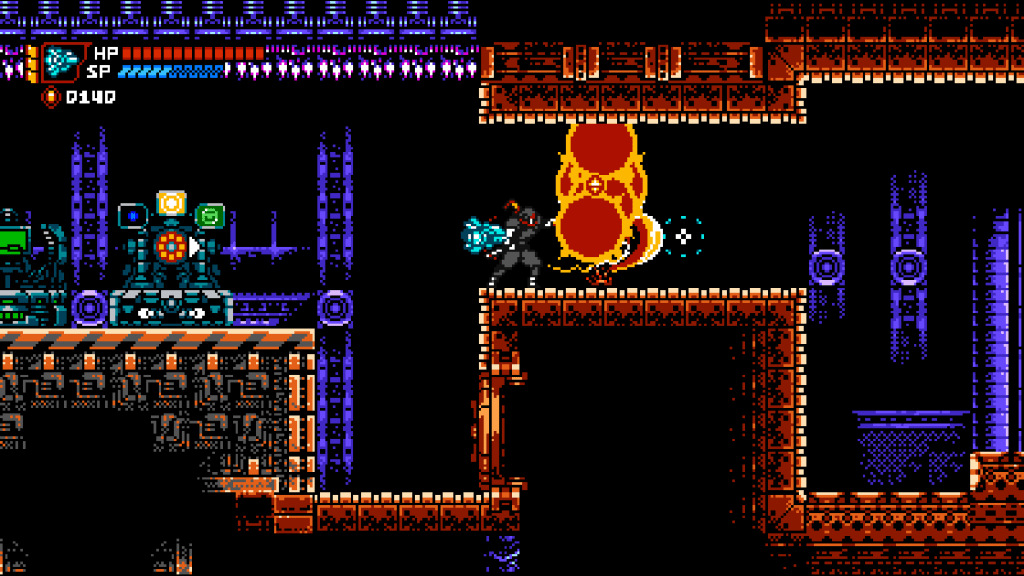 And this is where we get to the crux of the matter: CS loves punishing the player, and not so much in a tough-but-fair Ninja Gaiden or Dark Souls way. Honestly the game isn’t really all that difficult to get through. Instead it just kneecaps you over and over in increasingly irritating ways. This is well demonstrated by its checkpoint system which could be described as the inverse of Shovel Knight’s. Where that game offered rewards for smashing checkpoints instead of using them and risking a long walk if you died, CS instead will give you a checkpoint and nothing else, making you pay for things like SP refills and gadgets that make the upcoming section easier. Of course you don’t need these things, but it’s when the game starts having you pay for full health restoration on each respawn that I start to take umbrage. This genre is all about dying, learning, and getting better. Having to pay for the privilege of a full health bar to make mistakes with is unnecessary and benefits the player in no way. Hollowing in Dark Souls works because you can fix it by making progress and learning the level. CS just demands that you pay resources to be allowed health. It’s asinine.