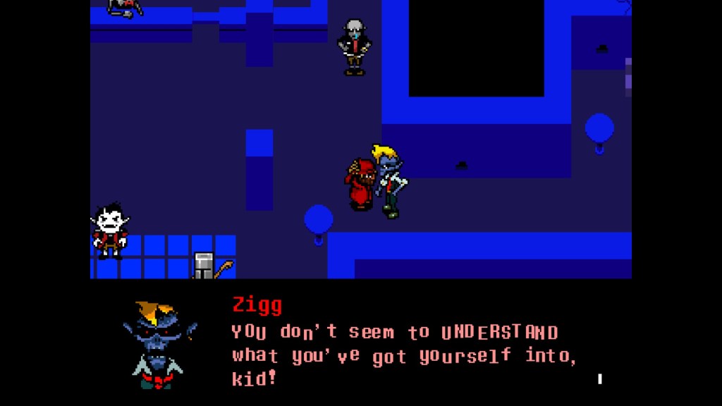 It’s a blessing and a curse that battles are a majority of Everhood because the rest of the game lags far behind it. The actual world of Everhood, while shrouded in mystery, is mysteriously terrible looking to its counterpart. Levels feel weirdly open yet claustrophobic, in that more could have been done with the space given despite there not being much space to begin with. A few levels are so shrouded in darkness that they look unfinished. You can tell that the journey was an afterthought, so long as it got you to your battles.