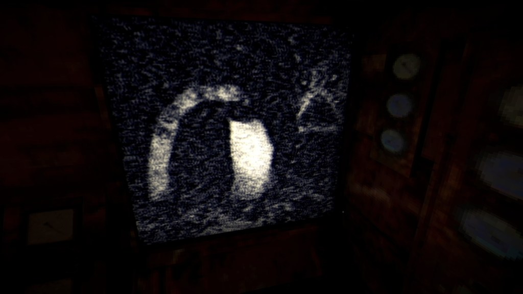 When I told my co-writer Kyle about this particular detail he replied with a brisk “nope”, and I think that reaction is where a major chunk of this game’s potential appeal lies. Your single porthole is stuck shutter-down because the sub isn’t rated for this depth. Part of the whole punitive mission angle, I reckon. You’re forced to get by entirely via coordinates, a sonar display pinging away, and your gut. Iron Lung checks many a phobia box: you’re submerged, slowly using up your limited oxygen, stuck in claustrophobic conditions, unable to use all of your senses, and perhaps most terrifying – plunged into the unknown. And the unknown is making noise.