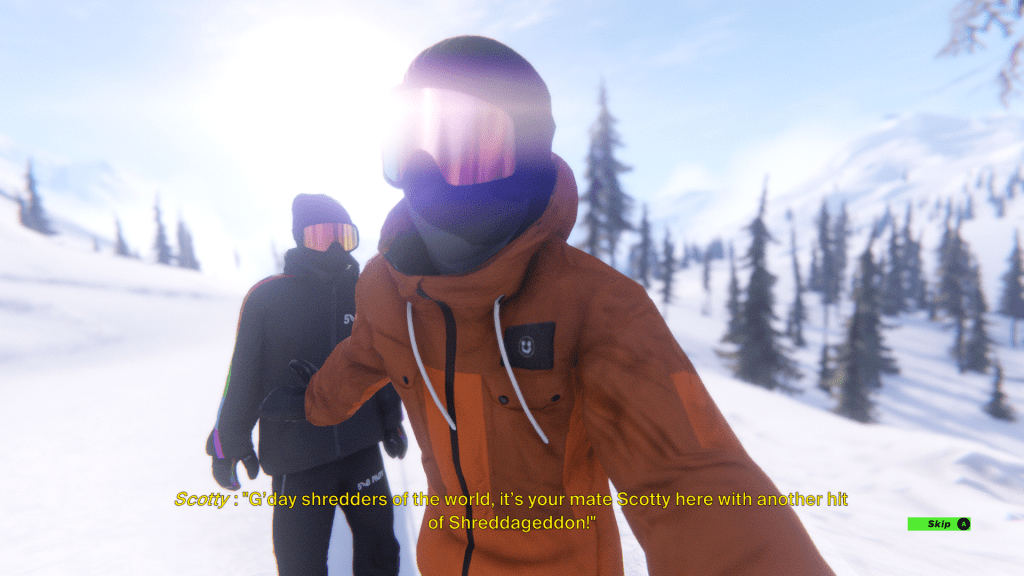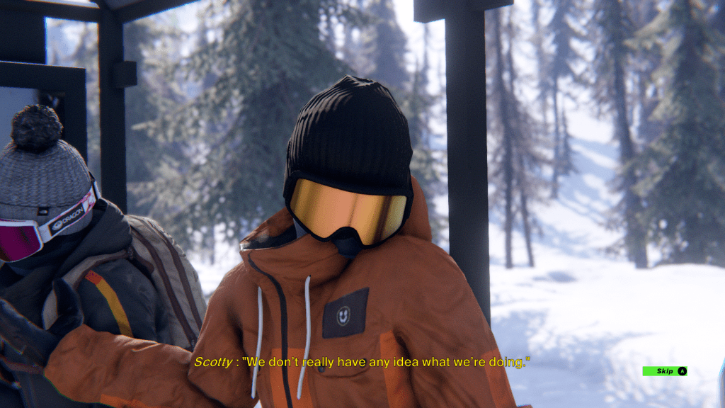 Call me a millennial, but the writing feels unapologetically forced in trying to squeeze any droplets of laughs it can between missions and comes up dry more often than not. The amount of professional snowboarders is a welcome inclusion, but the recording for their lines are just awful. We are nearly approaching NBA2K15 bad. Lines are read without any type of conversational flow to them and the audio quality at times sounds like it was recorded via Zoom call. It’s not good at all.