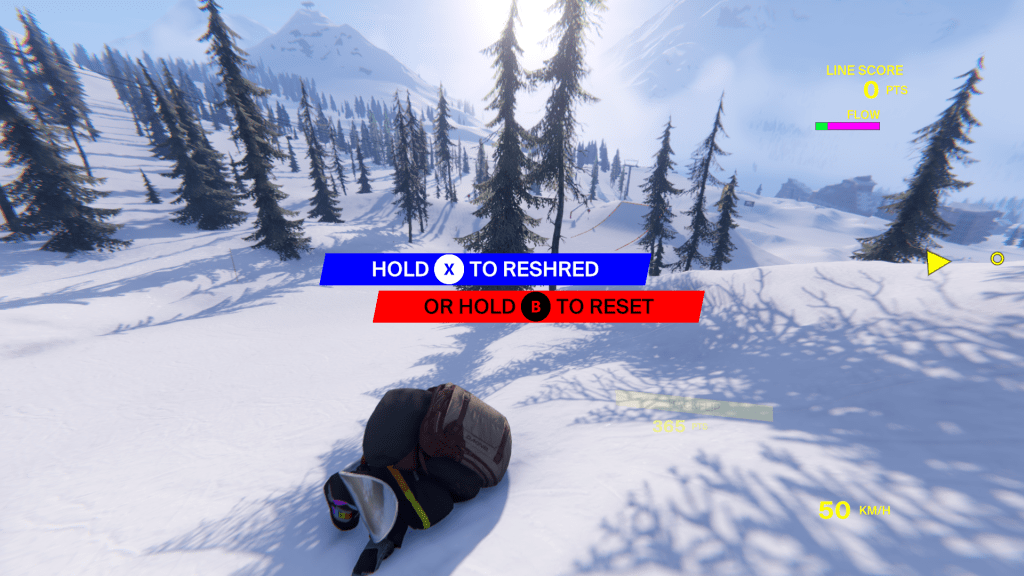 Hitting tricks and running solid lines down the slope is the name of the game, but Shredders can get a little hand-crampy at times in its attempt to mimic and pay homage to its predecessors. Tricks are done by grabbing the left or right of your board with LB or RB while moving the Right Stick wherever you want for a designated trick. You’ll also need to use the Right Stick to prep which direction you want to spin. You’ll also need to prep your jump by holding RT until release to get more air. You’ll also also need to hit LT before land to stabilize yourself. It can become a lot and most of the trick catalog slowly gets swallowed by the amount of input required to complete just one.
