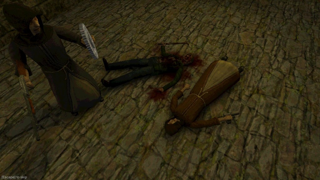 As said before, you wouldn’t be judged if you felt this was a fan-made RE1 game, but Nightmare of Decay takes points from a bevy of sources. Bits of Cry of Fear, House of the Dead, and even littler bits of Monty Python and The Texas Chainsaw Massacre are molded and smushed together into Checkmaty’s passion project. In lieu of basking in its survival horror, you’re given various weapons and a short amount of ammo to dispatch enemies. Using a limited sprint to get past the slower foes is a must but even the most common of enemies are not to be trifled with. Enemies will soak up your ammo, but once they’re dead: they’re dead, no respawning. This is especially nice as you are allowed infinite stamina in a cleared/safe room.
