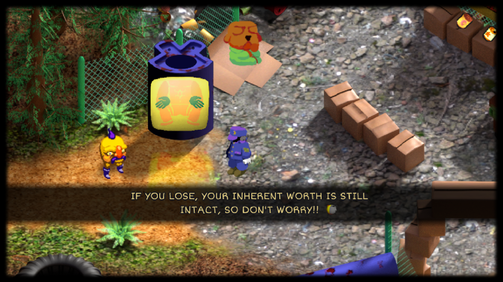 That said, I’m glad I took this journey. 24 Killers is a genuinely charming, characterful game with excellent writing and some truly memorable moments in store that very much warrant a play. It’s a warm-fuzzies inducing experience and it does so in such a unique way that I can’t name another game accomplishing exactly what this does, not even in Kimura’s ludography. Maybe someday I’ll find myself on these sandy shores again, powering an elevator with a treadmill to free a sentient teacup from an underground bunker. But even if I don’t, I know my inherent worth will remain intact. The squats machine told me so.