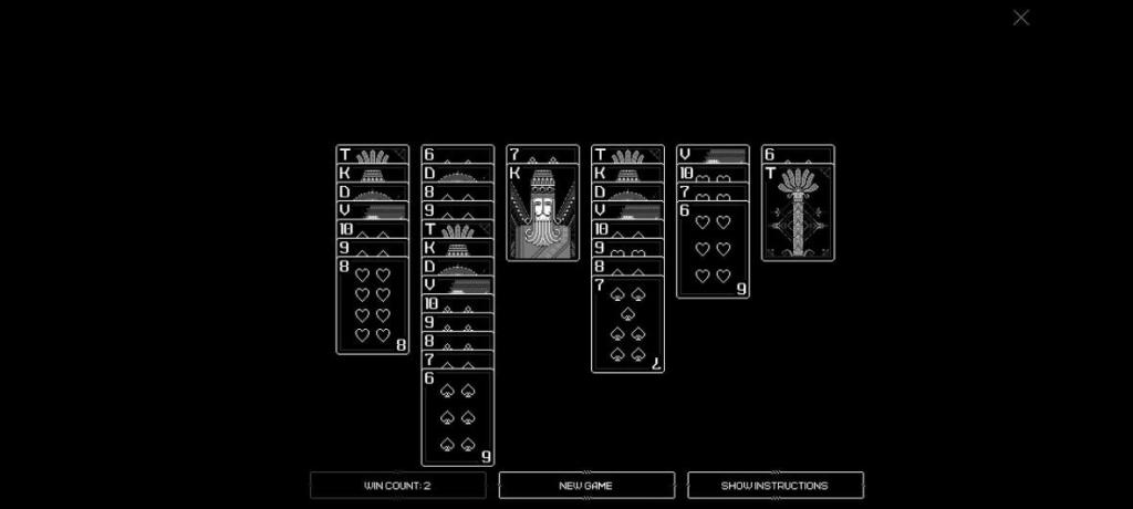 Your goal, stop me if you’ve heard this one before, is to put columns in order from T to 6. The cards have no suits (hence being entirely in black and white), but you don’t have anywhere near enough room to rearrange cards legally. The system is against you, you cannot win. At least, not without a little creative interpretation of the rules.