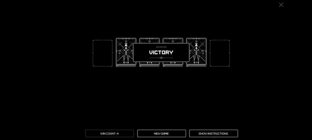 Couple all of this with the constant unsettling background noise – not music, noise – and the stylized visual “glitching” on each card you cheat with, and you have a game that’s far more arresting than any other traditional-ish solitaire game I’ve ever seen. Even when you win you’re met with an abrupt pop up that simply says “victory”, as if the game was programmed under the assumption that you’d never get that far so why bother with fanfare. It’s an unnerving experience, very much unlike anything I’ve seen in any card game much less solitaire, and it’s fantastic.