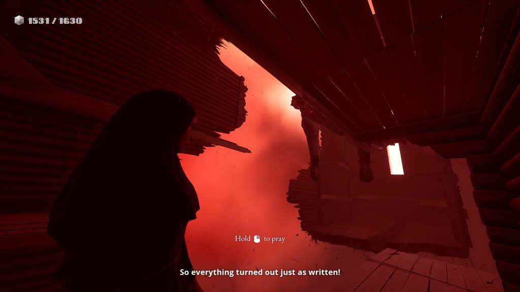 INDIKA starts with an over-the-shoulder perspective going through daily chores, done almost as a penalty than a necessity, giving the player a front row seat in the uselessness and unnecessary nature of these tasks. Taking a basket of potatoes from one part of the village to another with no thanks, having to walk back and forth several meters to fill a barrel with water from a well, using each keystroke to begrudgingly turn the crank, only to result in no satisfaction for Indika or the player. No respect given, but respect is expected to be earned.