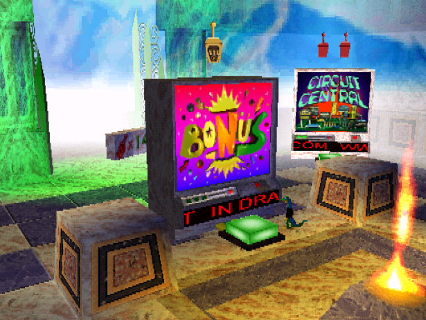 It’s almost impossible to discuss G:EtG on its own merits. Which it does have, to be clear! Games like this rarely sold as well as they did for no good reason back in the day, especially when we were so thoroughly inundated with 3D platformers that were almost all crap, with or without the benefit of hindsight. This game is not crap, but it does its absolute best to convince you it is. Its embracement of trash is complete and total, with no regard for the garbage juice dripping like a mid-brew coffee pot, hastening with each squeeze. Trash TV, trash writing, trash design: it’s all there, an endless deluge of refuse like garbage bag-shaped tears in rain. What people forget is that this was Crystal Dynamics at arguably the height of their powers. You like Soul Reaver? That’s the house that Gex built. No not Tomb Raider, they didn’t actually make that, it’s complicated. My point is there’s an undeniably solid mechanical foundation here, and I’m gonna focus on it for a bit because A) it deserves it and B) I need to talk about something positive before addressing the yappy lizard in the room.