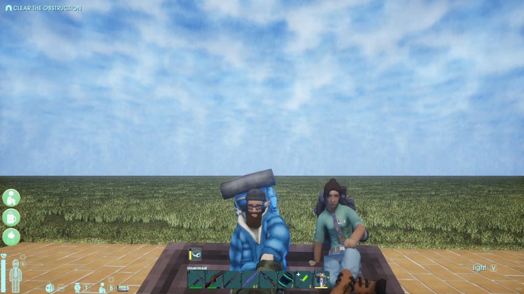 Combat at its core is simple albeit a bit janky at times, which I found okay. You’re not a warrior, you’re a scientist thrown into constant turmoil. The structure of light and heavy weaponry provides difference in damage and attack speed. Waving around a combat knife will hit quicker and allow for faster movement but hauling a pickaxe into someone’s skull requires more precise timing to risk/reward that extra damage. You can also opt for ranged combat by creating crossbows or throwing knives made out of box cutters and pens, to finding and looting actual weaponry from pistols to shotguns and more. Ranged is obviously the safer way to fight but you have piss poor accuracy to start and your character has probably never reloaded a magazine in their life, so getting used to that takes time and effort on your scientist’s part. Ammo can also be very scarce in the early to mid goings so whacking people and monsters with table legs when the situation calls for it is never a bad idea to save a few bullets for the angrier folk.