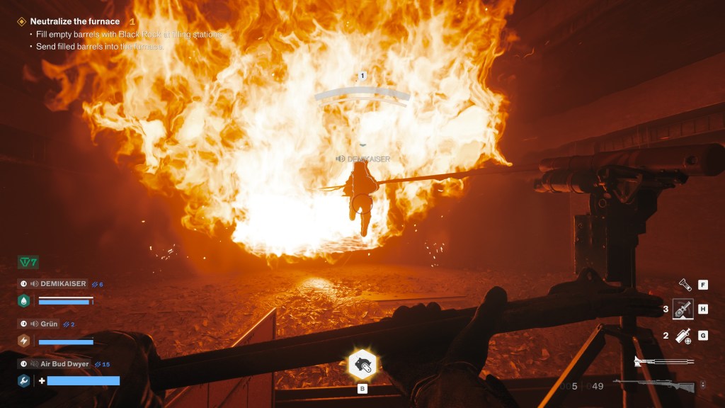 That said, the kits have impressed me more than the gunplay. This sort of build-your-own-class thing is rarely done especially well, and I’m not 100% convinced Firebreak fully sticks the landing, but it does manage to be a lot more interesting than most by separating your non-combat tricks from the rest rather than pulling a Helldivers and over-consolidating. Your objectives often demand QtEs of you and they aren’t particularly quick, but applying the correct secondary tool to the right task will just one-tap it, skipping that whole process! Very important, especially in higher difficulties when the pressure’s on. What makes this more interesting is the tension created by each kit’s combat utility, how they mesh into a build, etc. You could always bring all 3 kits and that’s fine, but favoring a specific secondary’s combat benefits is a legitimate reason to not bring anyone specialized in a specific objective! That’s neat!
