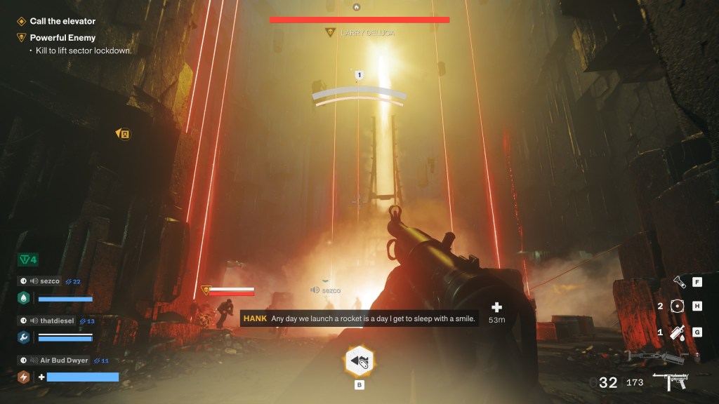 I wish I could say the elite Hiss that spawn with normal American adult names spice things up, but they’re just enhanced versions of preexisting enemies picked seemingly at random, which means at any given moment you can have a red alert boss lifebar appear for a basic mob who immediately gets dunked on. Don’t get me wrong, we get a lot of comedy out of being able to drop sentences like “wait we can’t leave yet, we have to murder…Jeffrey Fernandez?”, but these guys could have been great instead of further exacerbating the game’s Achilles’ heel. Even more perplexing are some of the enemies that show up on high difficulties, like the Orb, which as far as I can tell are entirely unexplained in-game. It seems to buff the Hiss? Maybe? We treat it as a priority target and shoot on sight because it’s a large glowy thing that looks imposing, but I could not tell you with any confidence what it actually does.